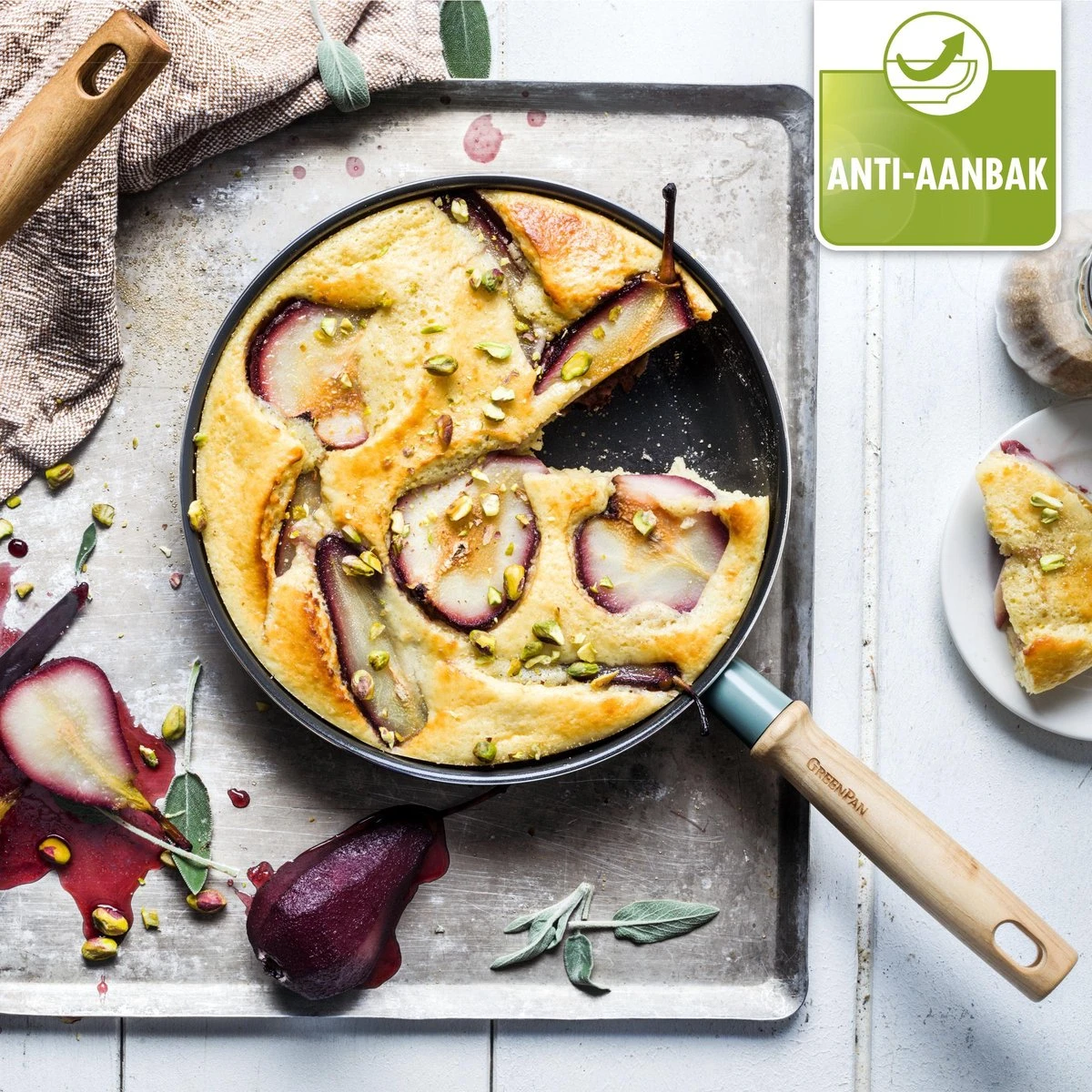 GreenPan ontwikkelde 11 jaar geleden als eerste potten en pannen met een gezonde keramische Thermolon™ antikleeflaag. Die wordt gemaakt van natuurlijke materialen, zonder schadelijke stoffen. Bij oververhitting van je pan kunnen er dus geen toxische stoffen vrijkomen. Bovendien heb je in een GreenPan slechts 1 koffielepeltje vetstof nodig voor uitstekende bakresultaten!