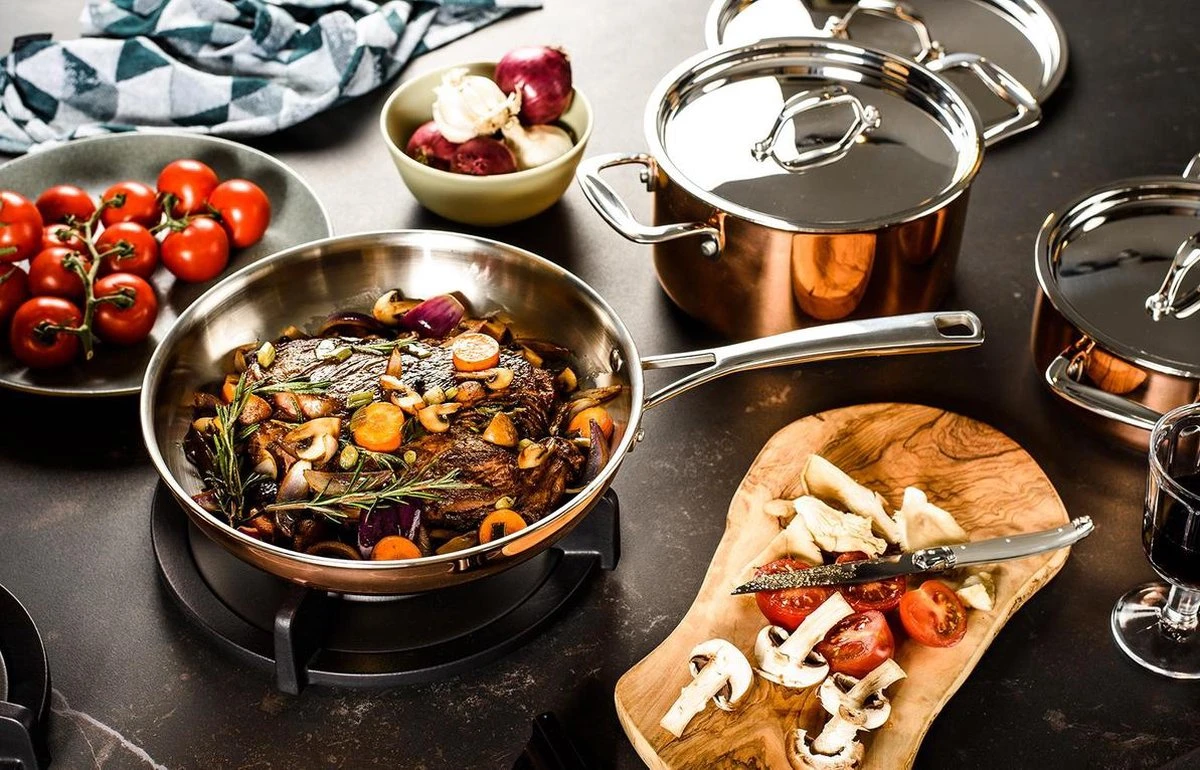 De koperen pannen zijn speciaal ontwikkeld voor inductie. Maar uiteraard kun je ze ook op gas en alle andere warmtebronnen gebruiken.