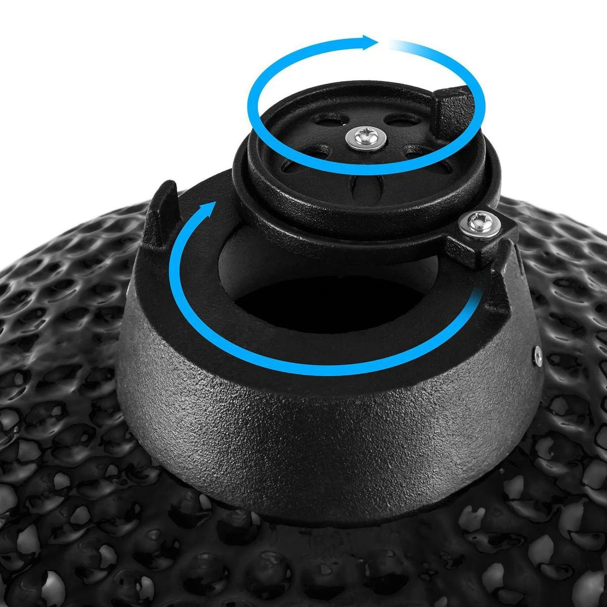• Dankzij de keramische schaal en gecontroleerde luchtstroom wordt het vlees of ander gerecht sappiger en malser dan in welke andere stalen barbecue ook !